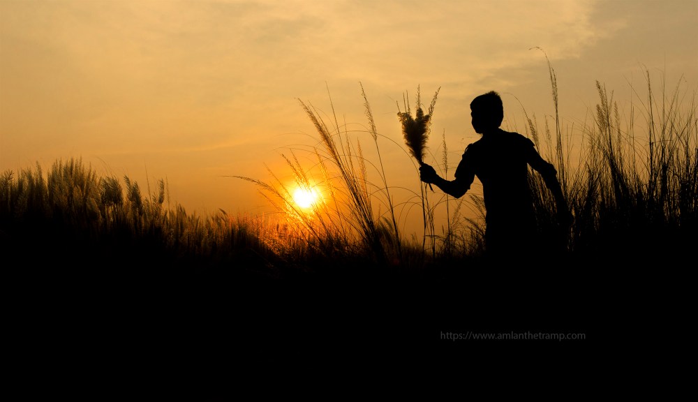 Autumn is the most colorful season in this world. In Europe, America and a long portion of Asia and Oceania, Autumn is known as Fall and the fall colour of conifer trees makes the season dreamy. But in Bengal (mostly in Bangladesh and West Bengal – the easternmost state of India) Autumn is divine. After a Sweaty Summer and wet Monsoon, when Autumn comes, the sky becomes azure blue with chunks of small white clouds. The temperature starts decreasing and the entire landscape of rural Bengal gets ornamented by white Saccharum. In Bengali, this is called “Kash Phool”. Kash Phool (Saccharum spontaneum) is a grass native to West Bengal and Bangladesh. Its white, cotton like flowers brings festive season in Bengal and thus it has significance in Bengali literature and movies.