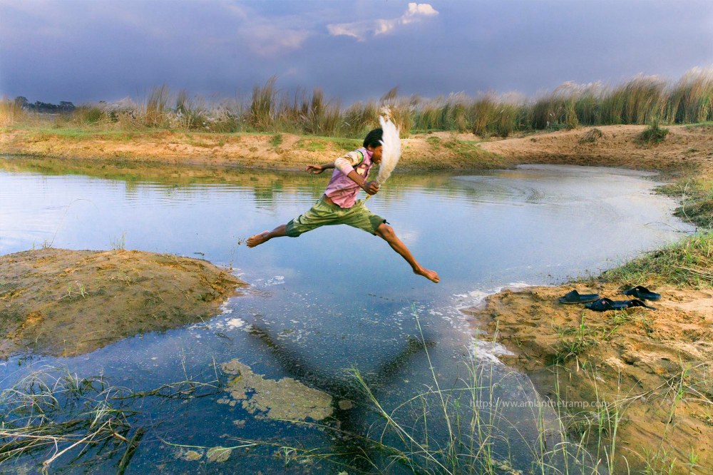 Our “Apu”, original name Biltu, made our day. We kept clicking his activities. He was running, playing with flowers, jumping on the river bed and our camera-shutters were creating clicking sounds.