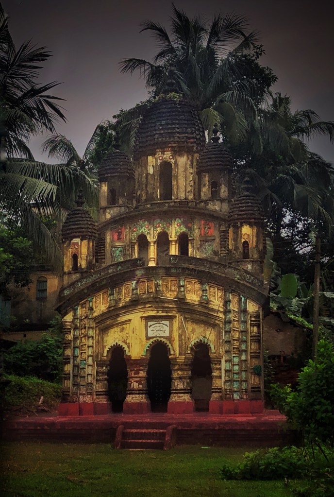 The next temple was the Damodar Jiu temple of the Roy family. Architecturally, it was a Navaratna temple. The panels of some mythical deities on the temple were quite eye-catching.