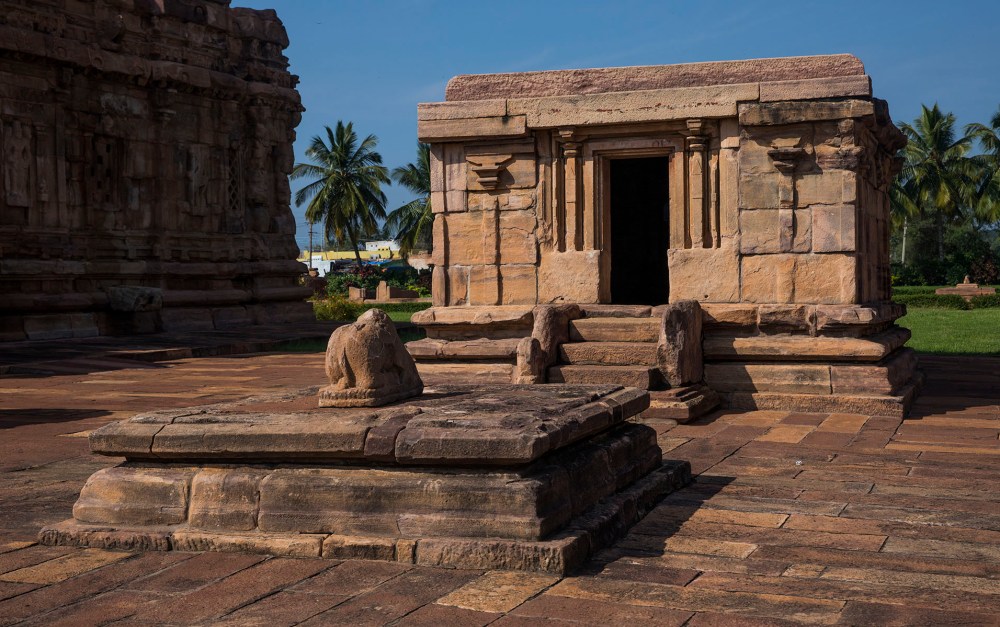 Walking a few metres towards the south, Sangameshvara Temple is placed next to a pillar. According to the inscription of the broken octagonal pillar, Sangameshvara Temple was erected by the Chalukya King Vijayaditya. But the temple was not completed. Later in the Rashtrakuta Era, there was an attempt to work on the temple. But the temple remains unfinished.