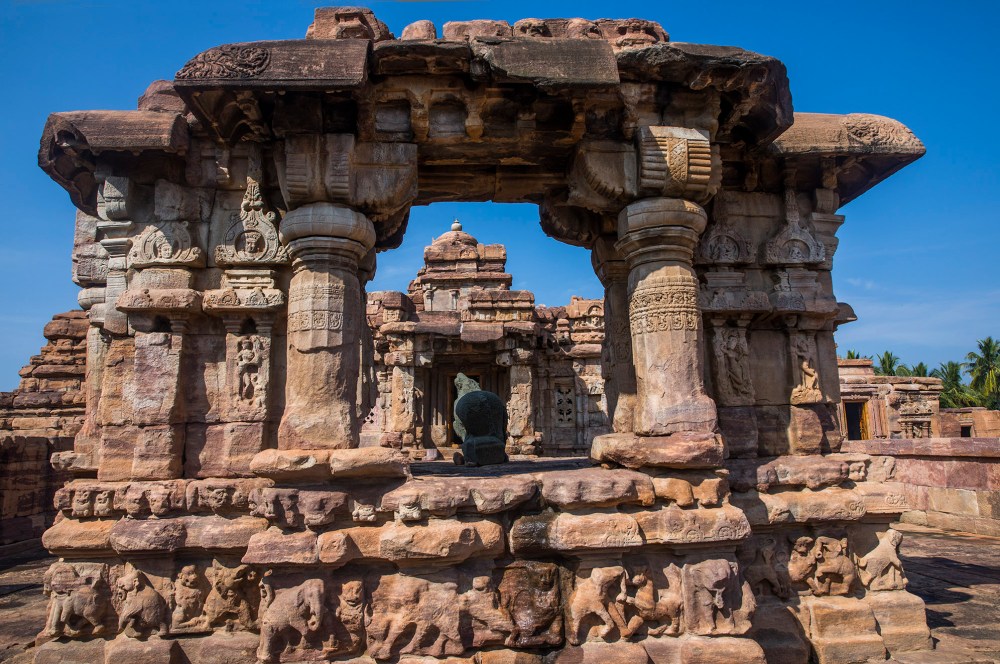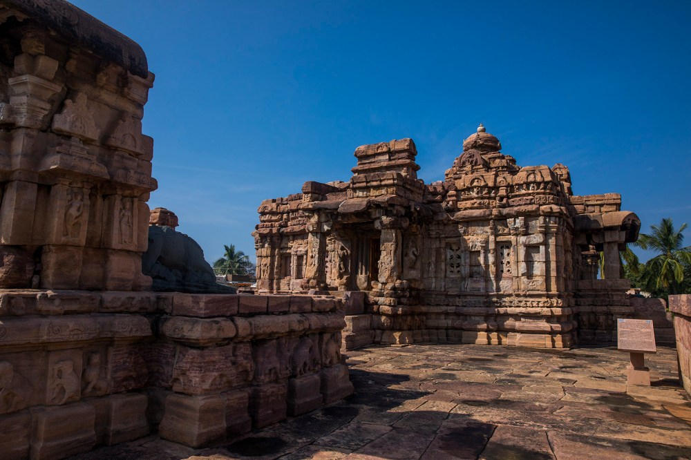Standing on the east of Jambulinga Temple, Galaganatha Temple is probably an unfinished structure. The temple was founded in the last decade of the 7th century. Raised on a broad platform, this temple is surrounded by passageways on its three sides with projecting porches on three sides.