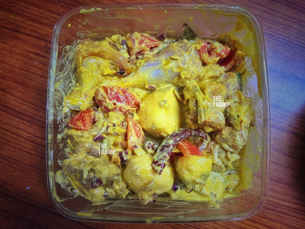 Mix everything properly. Make sure the chicken pieces are well coated with the spices and yoghurt.