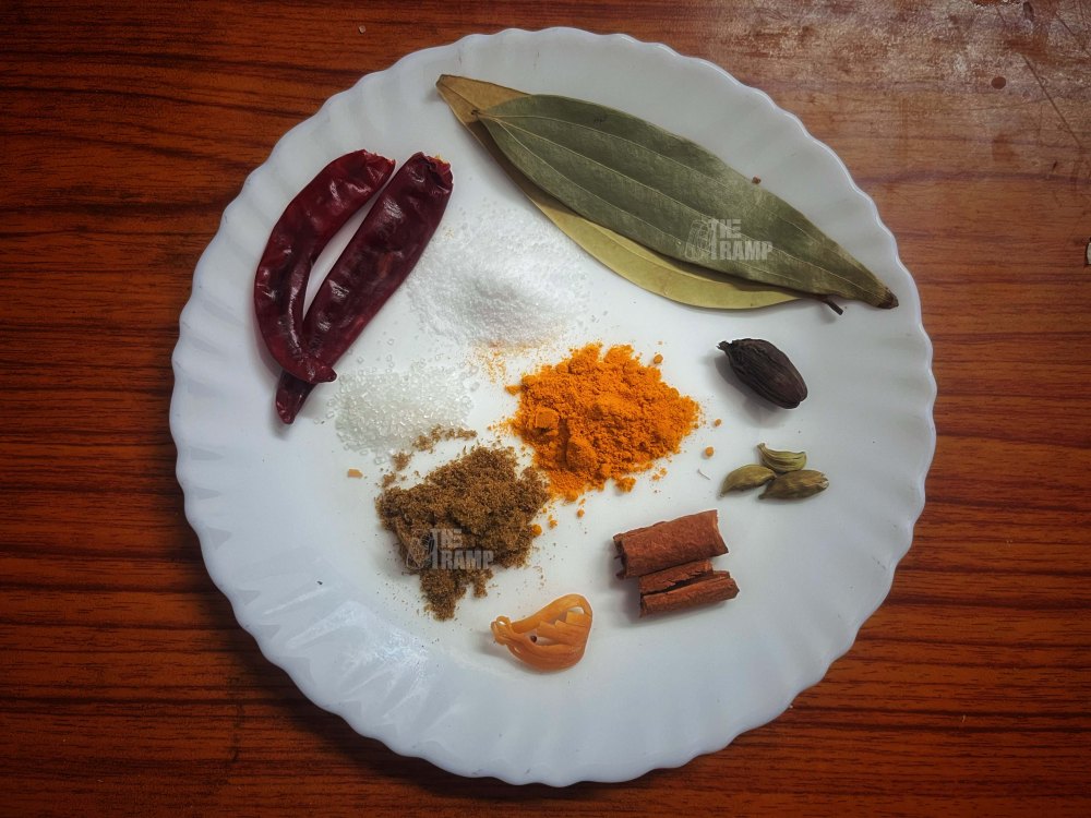 The only ingredients you should not add now are ghee and garam masala. These will be added later.
